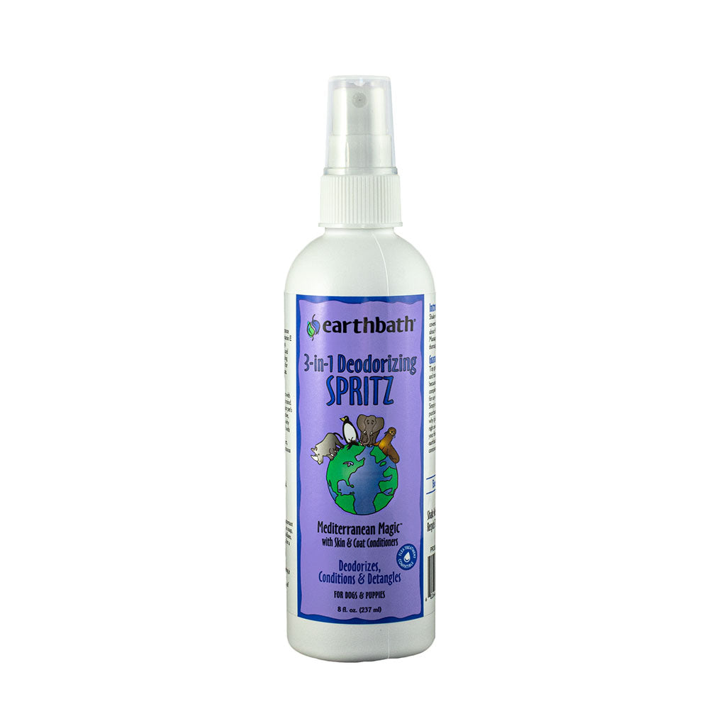 This 3-in-1 Deodorizing Spritz naturally conditions and detangles coats, while deodorizing with the fresh botanical fragrance of rosemary oil. Organic aloe vera and vitamin E leave the coat exceptionally soft and shiny. Use between baths to freshen, condition and detangle, or as a finishing spray after bathing your dog with earthbath® shampoo. Safe for dogs over 6 weeks old. Not for use on cats.