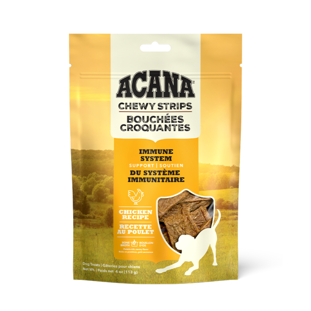 ACANA™ Chewy Strips are a delicious treat made with 90% animal ingredients*, chicken, cranberries, and bone broth for a savory flavor. Rich in antioxidants and Vitamin E, they support immune health while delighting your dog. Free from artificial preservatives, they’re crafted in the USA with quality global ingredients. Perfect for rewarding your pup!