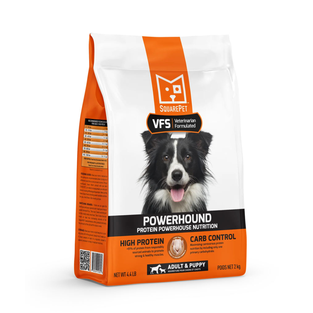 VFS PowerHound is energy-dense, high-protein canine nutrition with guaranteed ultra-low carbohydrates specifically formulated by veterinarians for canines. The high meat-based protein nutrition found in VFS PowerHound supports energy demands, strong muscles and bones, and promotes lean body mass for optimum body condition and weight control. VFS PowerHound is ideal for all life stages, including growing puppies and pregnant and lactating females.