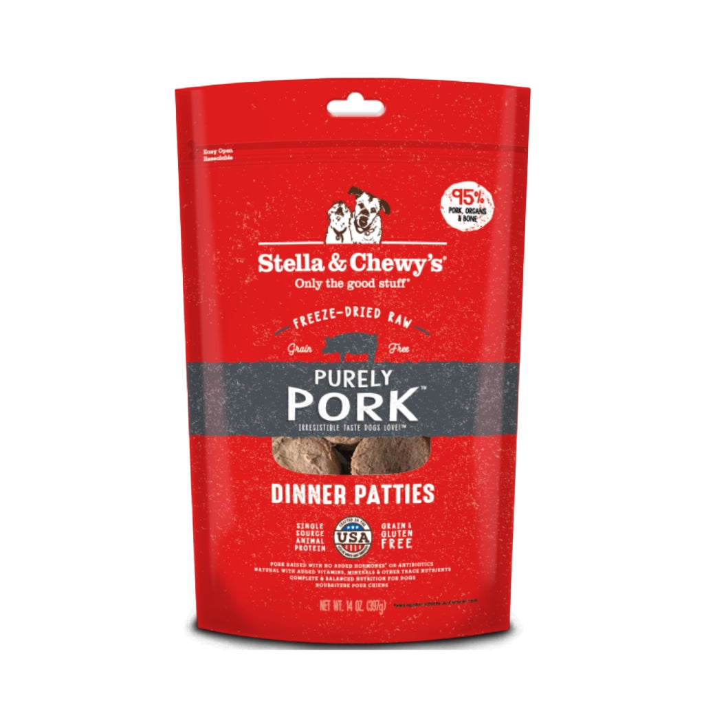 Stella & Chewy's Purely Pork freeze-dried patties are formulated to mirror a dog's ancestral diet! There has never been a more convenient way to feed a biologically appropriate raw food diet. We believe dogs deserve to thrive on real, minimally processed food - the way nature intended.