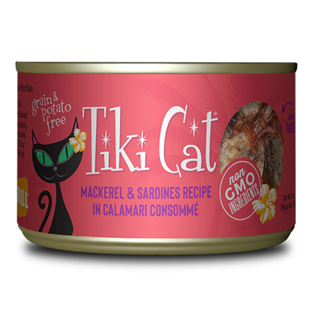 Mackerel, sardine, calamari broth, calamari, sunflower seed oil, locust bean gum, guar gum, xanthan gum, choline chloride, paprika, taurine, zinc sulfate, vitamin E supplement, niacin (vitamin B3), thiamine mononitrate (vitamin B1), calcium pantothenate, vitamin A supplement, iron sulfate, riboflavin supplement (vitamin B2), pyridoxine hydrochloride (vitamin B6), copper sulfate, folic acid, manganese sulfate, potassium iodide, vitamin D3 supplement, menadione sodium bisulfite complex (source of vitamin K activity), biotin, vitamin B12 supplement.