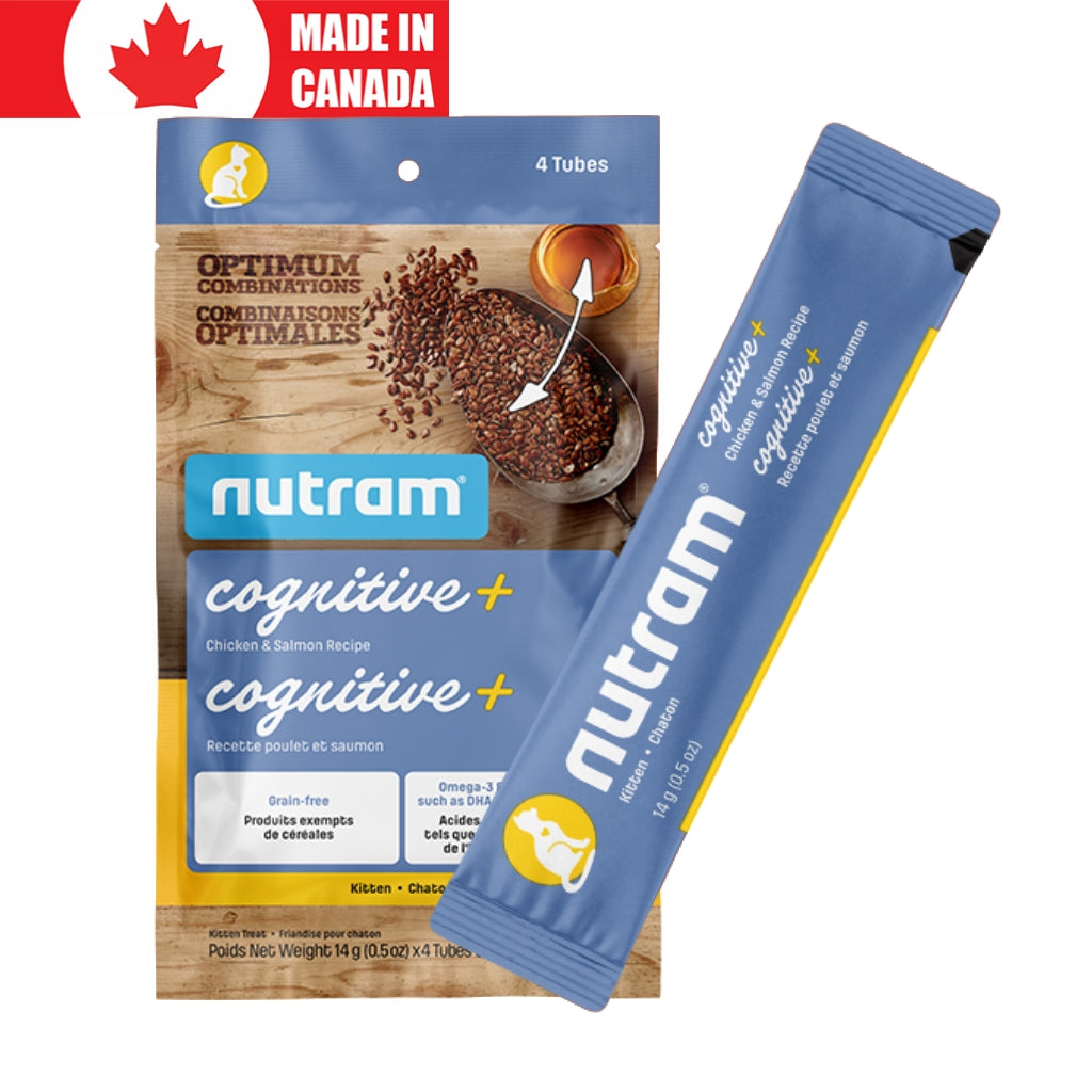 Nutram Cognitive+ Kitten Treats support the brain development and function. Our Holistic approach starts with healthy development. Flaxseed and Salmon Oil, rich sources of Omega-3 fatty acids, support the normal cognitive development in your young pet.