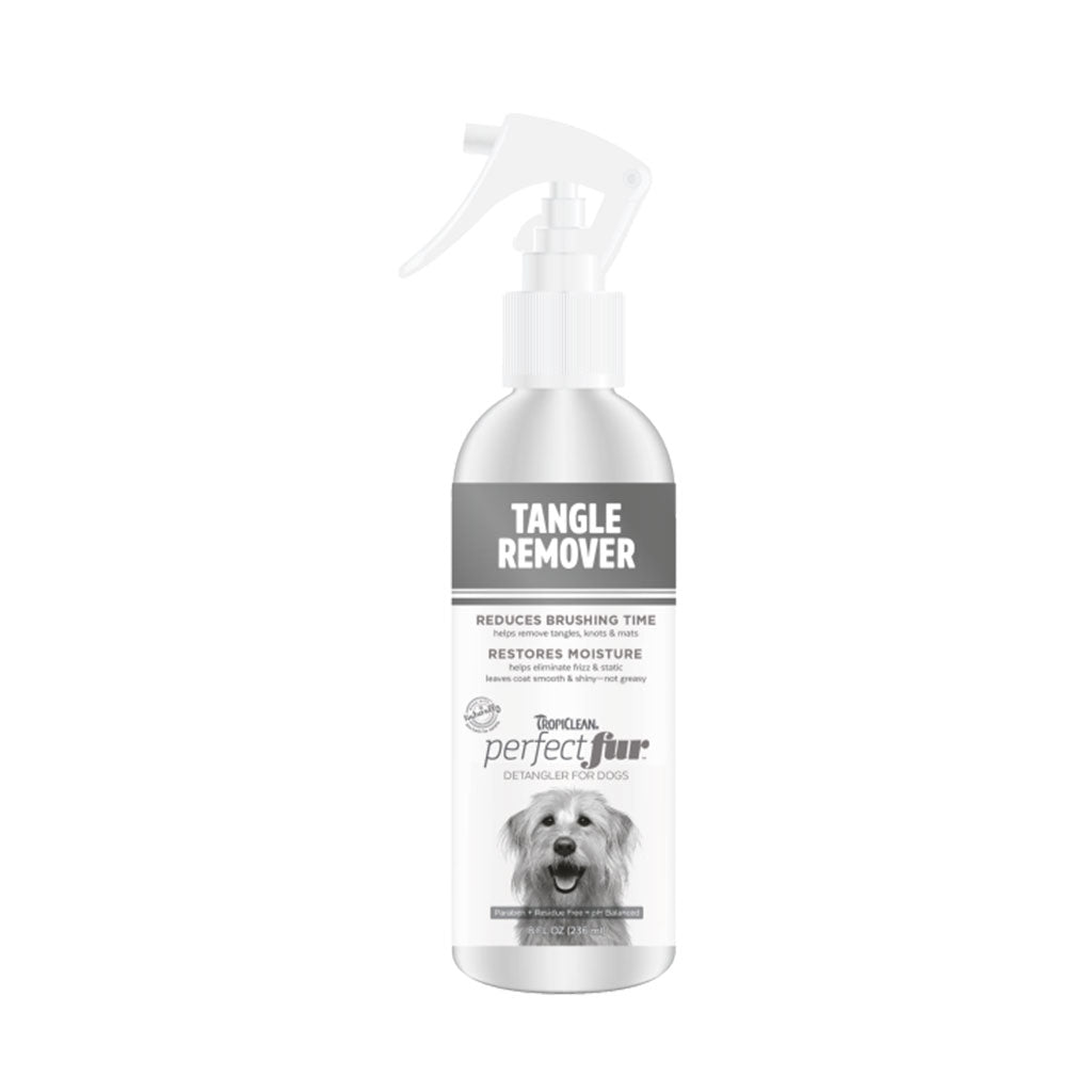 Detangler that takes dogs’ fur from knotty to nice. Quickly coats tight tangles and gnarly knots for gentle brushing. No-rinse formula helps restore and retain moisture while helping make frizz and static obedient and well-behaved.