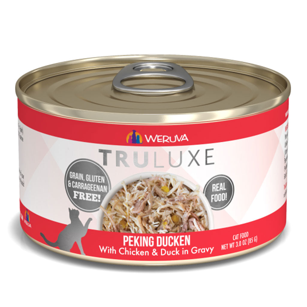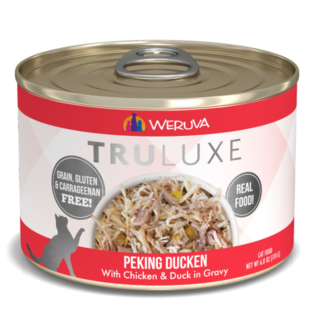 Get your ducks in a row and press your lucken with some Peking Ducken. Chunks of duck breast and chicken breast that are free of added antibiotics and hormones. They are also cage free . Your cat might enjoy it so much that he/she will "quack" you up by licking the bowl clean!