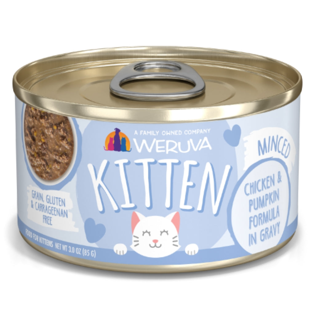 Weruva from the start! Each Weruva Kitten recipe provides your kitten with the high-quality ingredients you know and love. They're specifically formulated to support a growing kitten both physically and mentally. Always free of grain, gluten, carrageenan, or any artificial flavors, you can be confident your little loved one is getting the best nutrition! Like all Weruva foods, their Kitten formulas feature high-quality proteins (real meat!), and a high moisture content from delicious gravies or patés. Growing Happy, Growing Healthy, that's the Weruva way from the start.