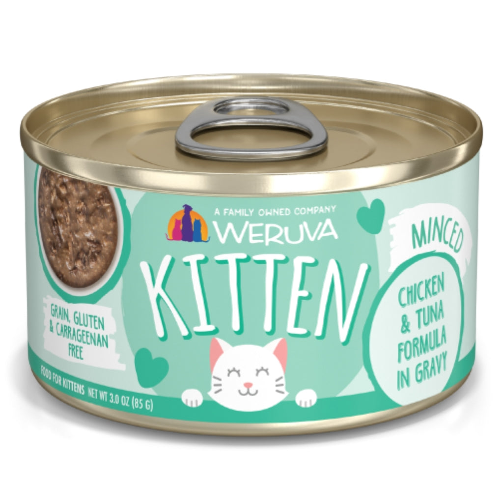 Weruva from the start! Each Weruva Kitten recipe provides your kitten with the high-quality ingredients you know and love. They're specifically formulated to support a growing kitten both physically and mentally. Always free of grain, gluten, carrageenan, or any artificial flavors, you can be confident your little loved one is getting the best nutrition! Like all Weruva foods, their Kitten formulas feature high-quality proteins (real meat!), and a high moisture content from delicious gravies or patés. Growing Happy, Growing Healthy, that's the Weruva way from the start.