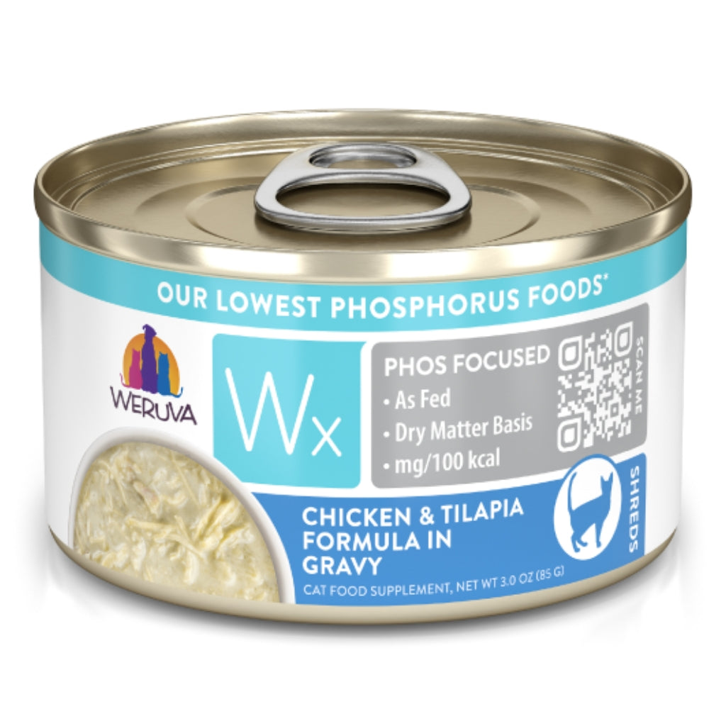 Weruva Wx Phos Focused foods contain carefully selected animal-based proteins with naturally low phosphorus levels (below complete and balanced phosphorus standards per AAFCO). Weruva Wx Phos Focused foods are designed to help palatability and muscle maintenance. This hydration-focused recipe is grain, gluten, and carrageenan free and contains no artificial flavours. This food is not complete and balanced and should not be fed as the only meal to cats on an everyday basis. Consult your veterinarian about how to fit this food into your cat's diet.