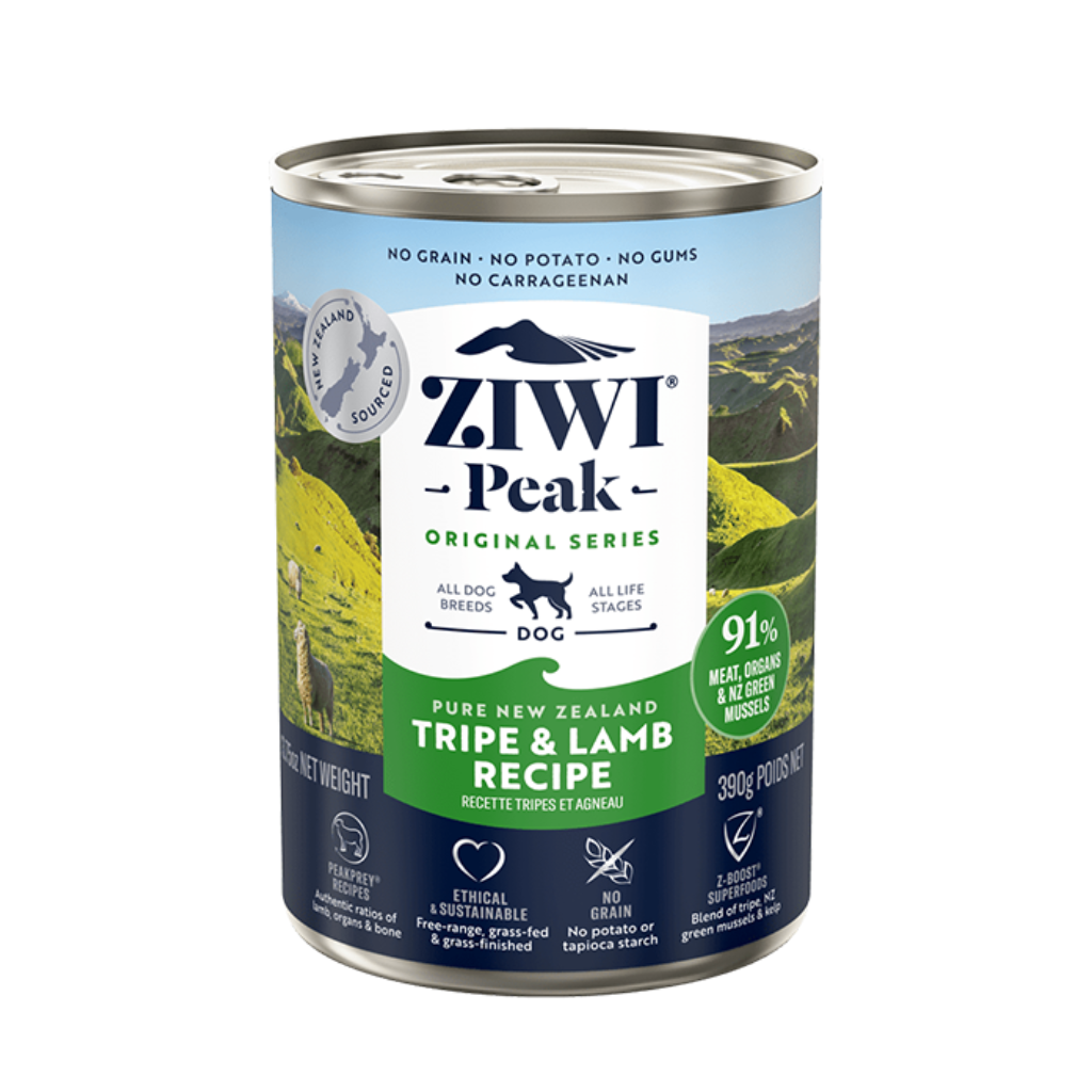 New Zealand is famous for its world-class lamb, ethically raised by multi-generational family farmers under perfect conditions. Their temperate climate and lush, nutrient-rich farmland allows the lamb to graze all year round. This ZIWI Peak Tripe & Lamb recipe combines nutritious lamb with nourishing and highly palatable green tripe, for a meal perfectly crafted for carnivores. With a mouth-watering 91% meat, organs, & New Zealand Green Mussels, this delicious recipe is great for dogs with sensitive stomachs, or any dog who sees adventure on the horizon.