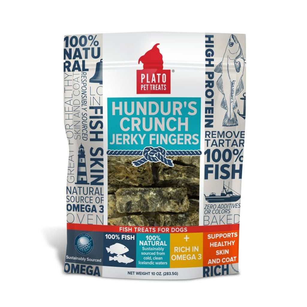 Hundur’s Crunch Jerky Fingers have only one ingredient: Cod Fish Skin. The cod are caught in the North Atlantic Ocean in a certified sustainable manner and then air-dried so as to retain the inherent nutrients in the fish while also naturally preserving them (but your dog will just think that they smell and taste amazing). These fish skin treats offer a natural source of Omega 3 & 6 fatty acids, support skin and coat health, and help fight tartar while your dog enjoys the long-lasting chewing satisfaction. They make great replacements for rawhides and bones. And since they are only one ingredient, you can be sure that these treats are grain free and contain no artificial flavors, corn, wheat, or soy. Hundur’s Crunch also comes in Jerky Minis.