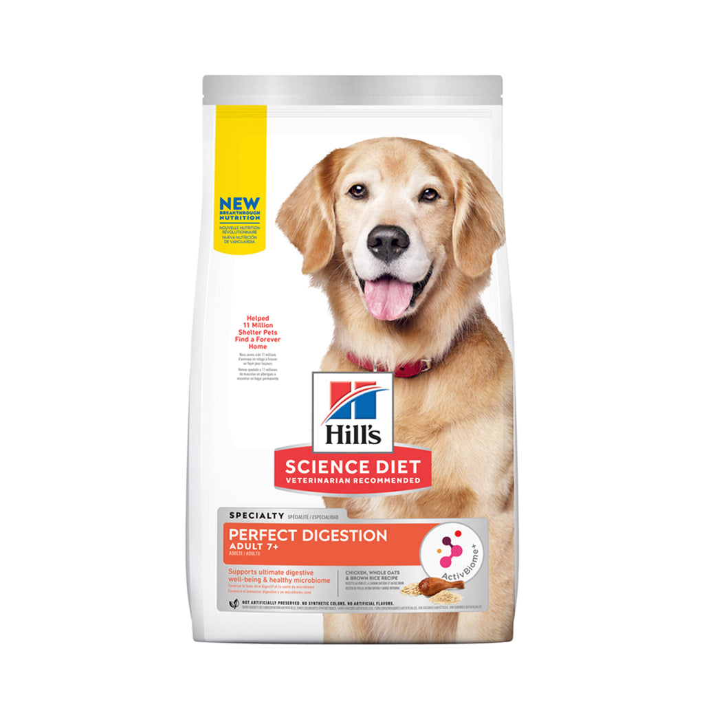 Every dog has an entire ecosystem living within them - the gut microbiome, full of billions of desirable & undesirable bacteria unique to your pet. The right nutrients can help balance their microbiome. You can actually affect not only their digestive health, but their overall well-being during their golden years. That's why we developed Science Diet Perfect Digestion dry dog food with our ActivBiome+ Technology ingredient blend of prebiotics. It's breakthrough nutrition supports a dog's unique gut microbiome for healthy digestion & balanced nutrition to help your dog age 7+ feel their best.