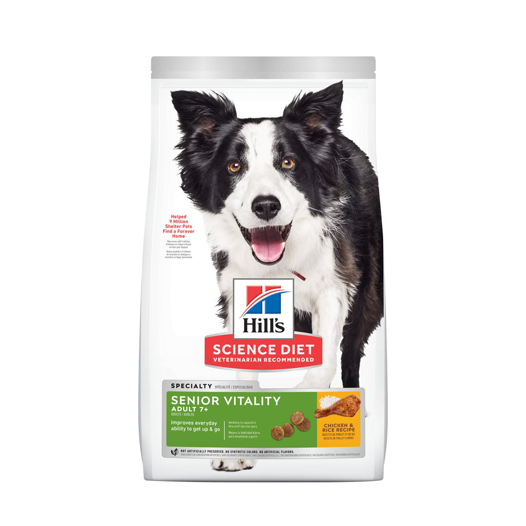 Just because you have a senior dog, it doesn't mean he or she is out of the game. Hill's Science Diet Senior Vitality dog food is specially formulated with decades of cutting-edge research to fight the effects of aging in adult dogs 7+. Made with easily digestible ingredients, this dry dog food made with natural ingredients is packed with Omega-3 & -6 fatty acids to promote a lustrous coat for your dog during the senior years. The proprietary blend of ingredients is precisely balanced to support brain function for older pets, interaction with others, and overall energy throughout the day.